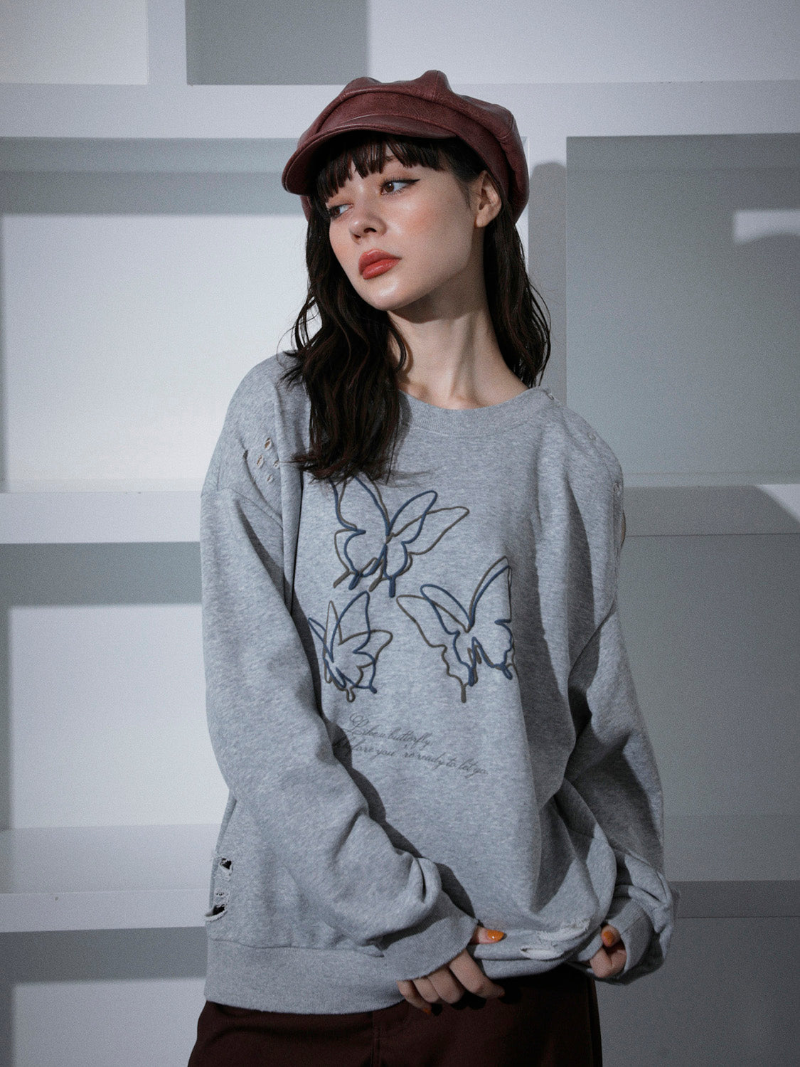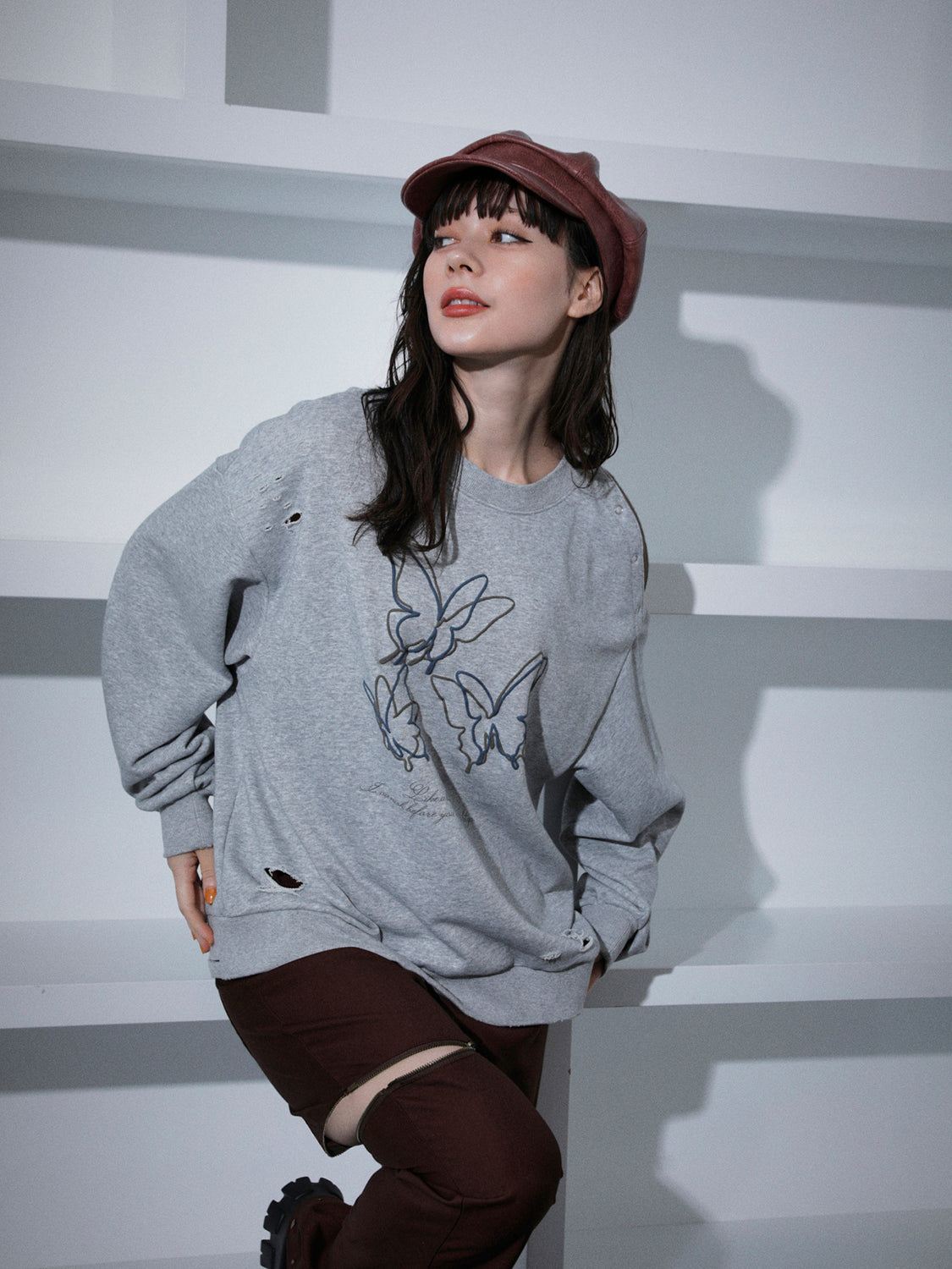 オーバーサイズのスウェットやデニムと組み合わせると、カジュアルな装いにエッジを効かせるアクセントに。