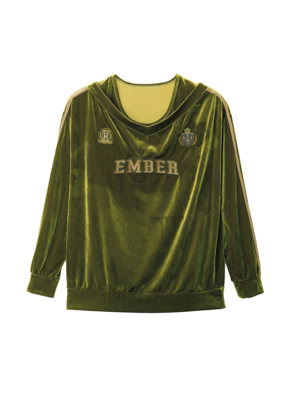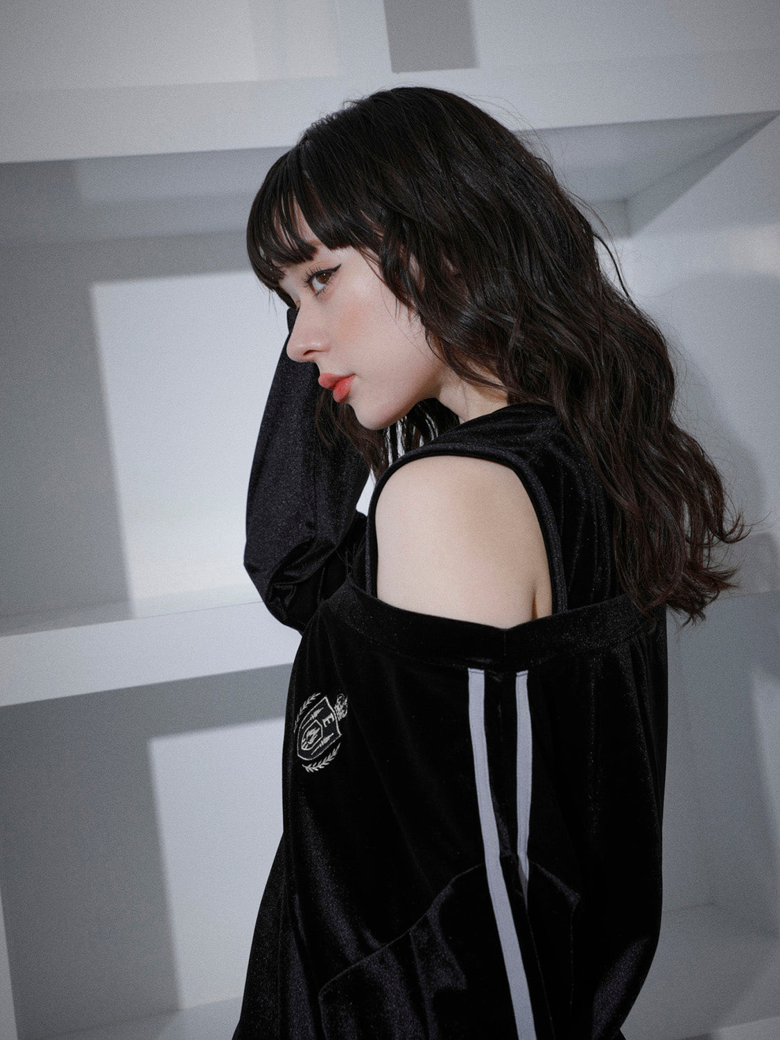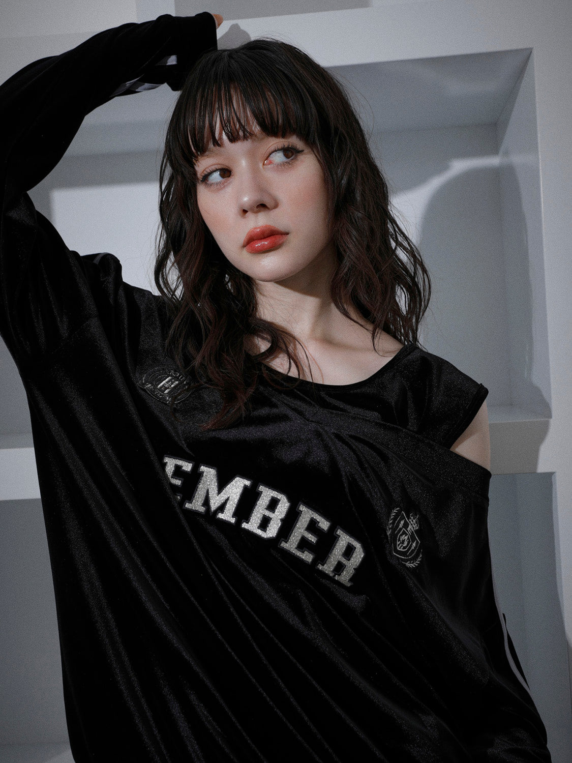ベロア素材ならではの艶感と落ち感が魅力の2枚仕立てトップス。