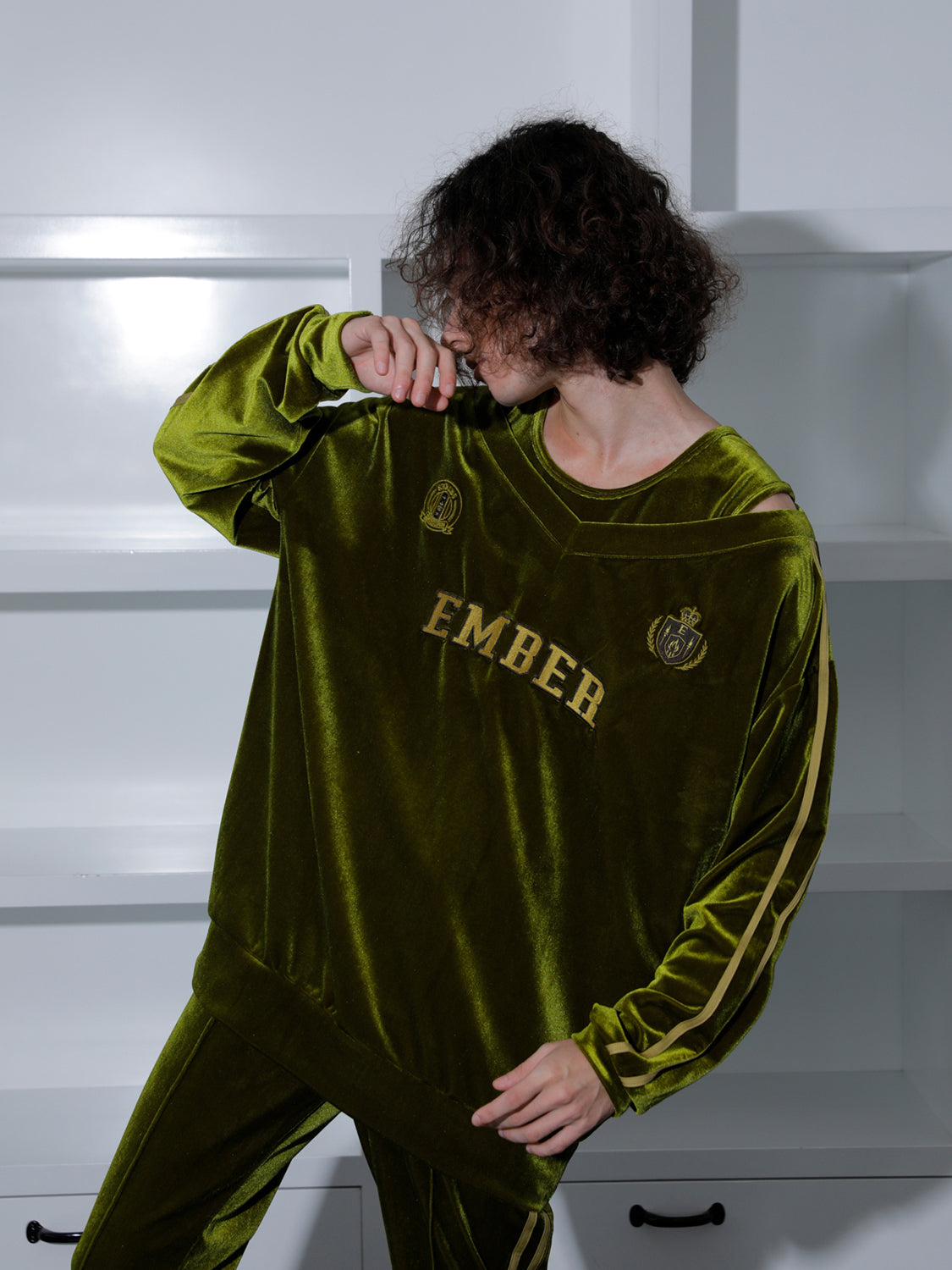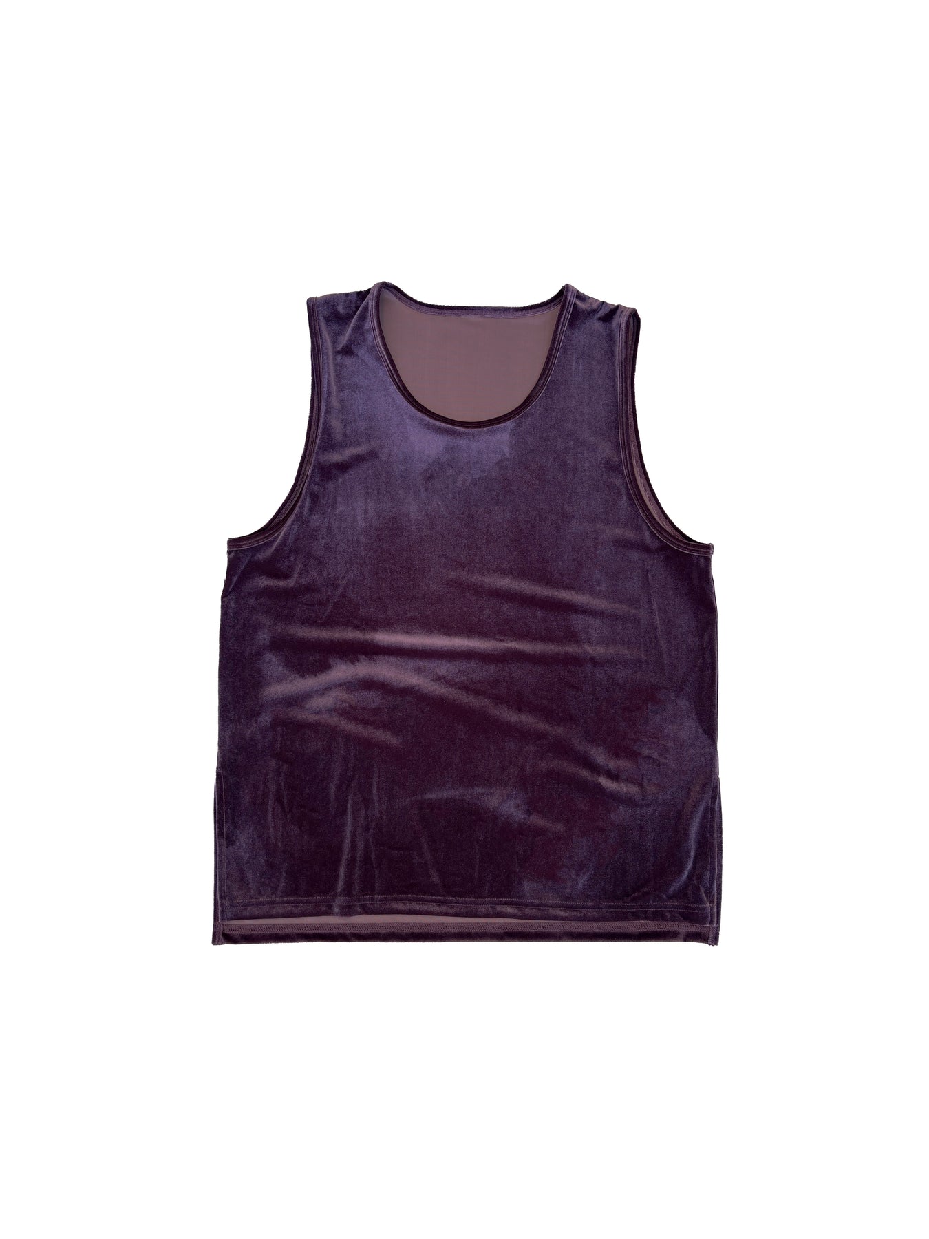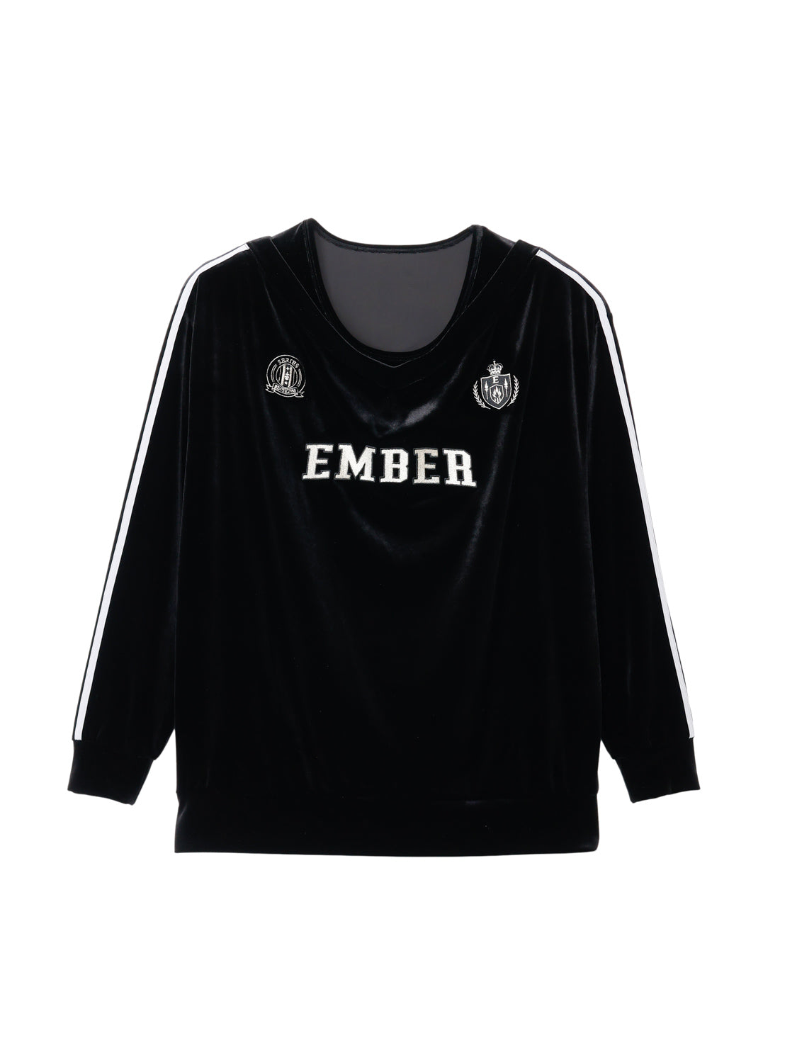 ベロア素材ならではの艶感と落ち感が魅力の2枚仕立てトップス。