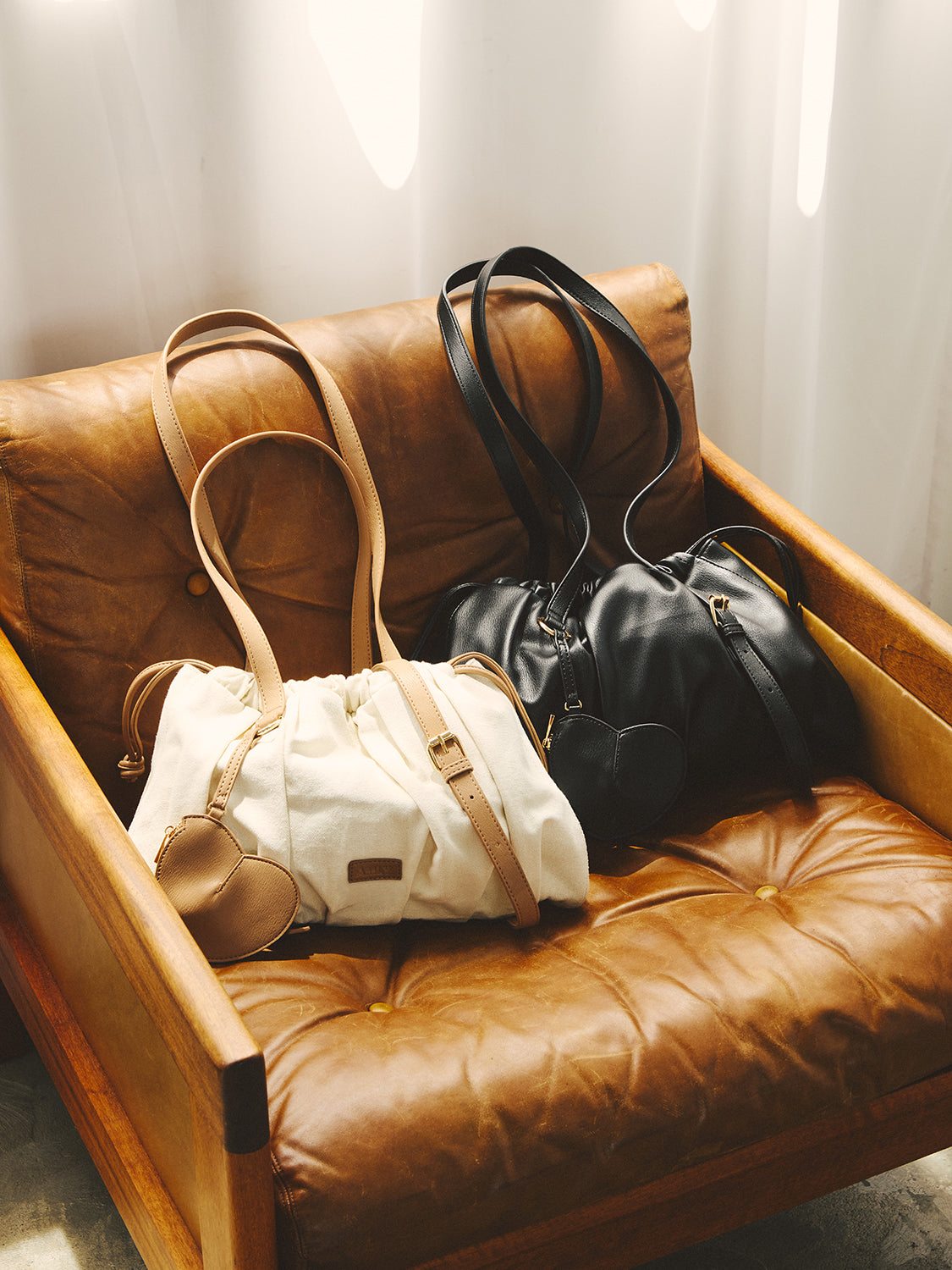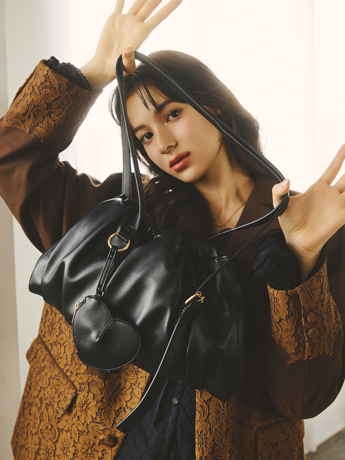 ハート型の小さいポーチ付きでトレンド感もプラス。