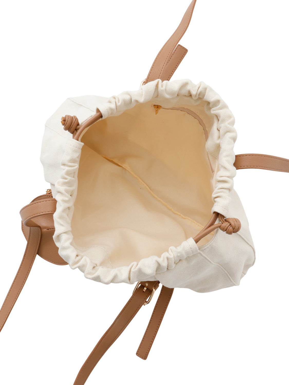 アイボリーはキャンバス地とレザー(ブラウン)の組み合わせでカジュアルに。