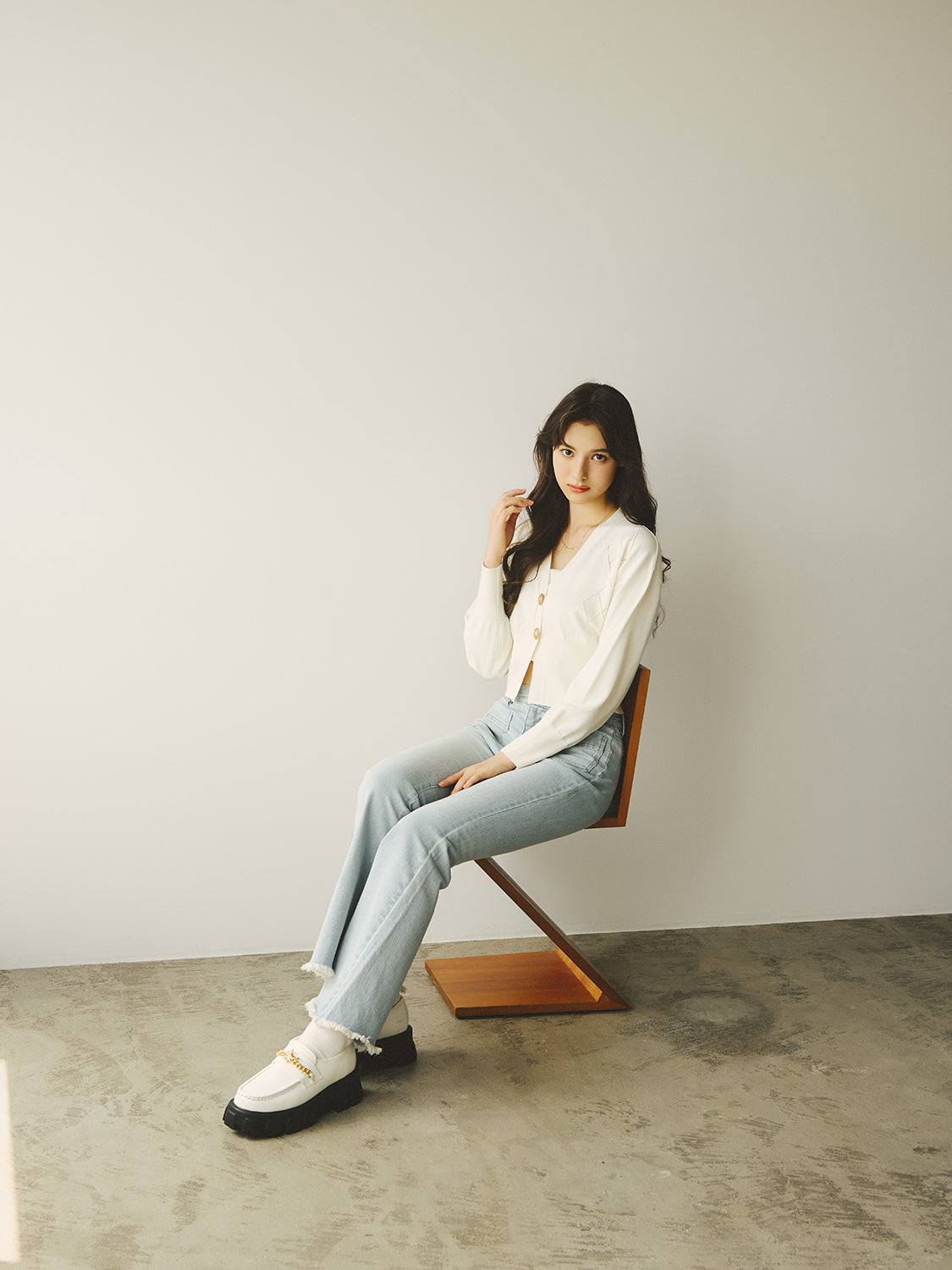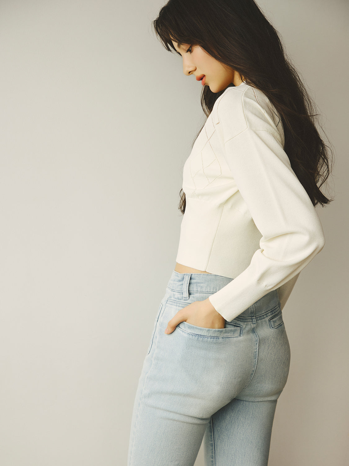 膝下からは程よくフレアラインが広がり、脚長効果も抜群です。
