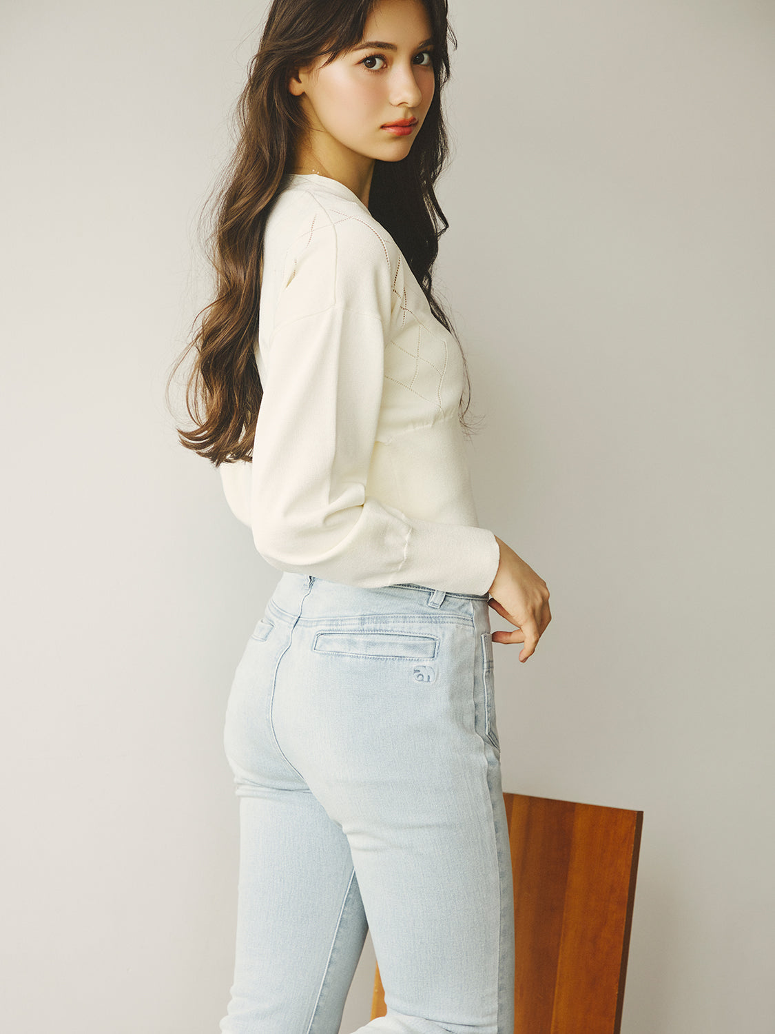 ヒップ〜太ももはすっきり、膝下から自然に広がるラインが、脚を綺麗に見せてくれます。