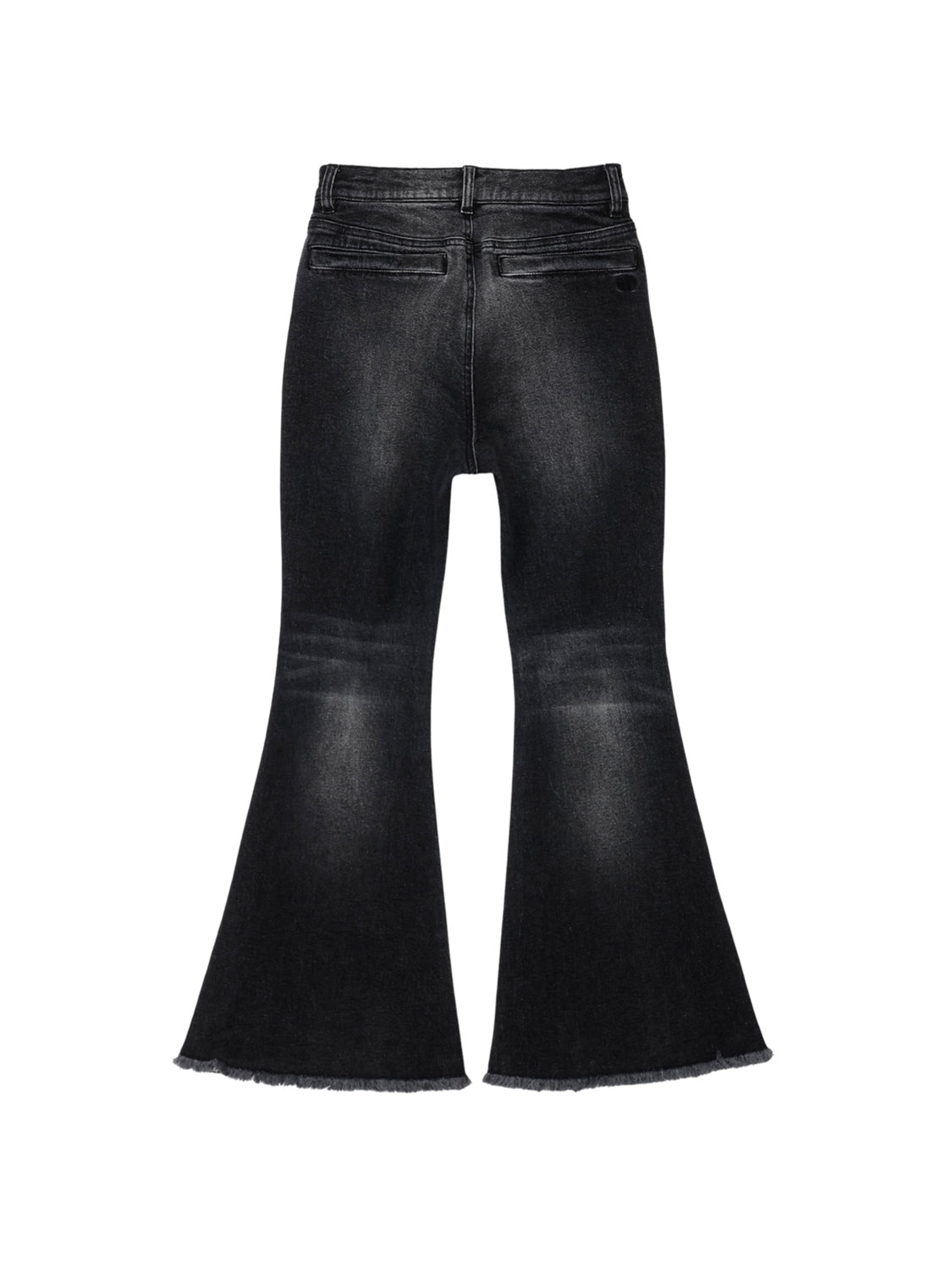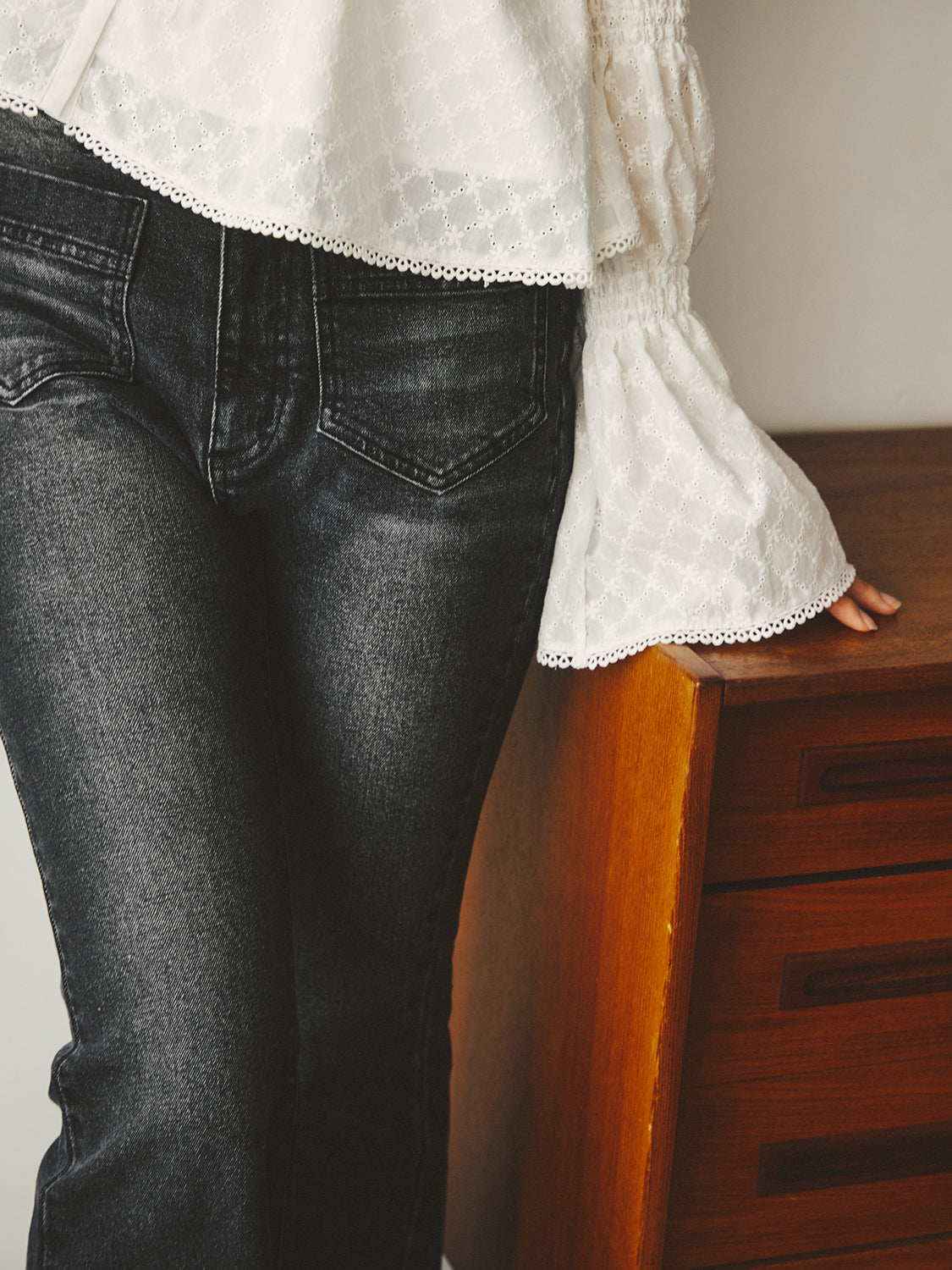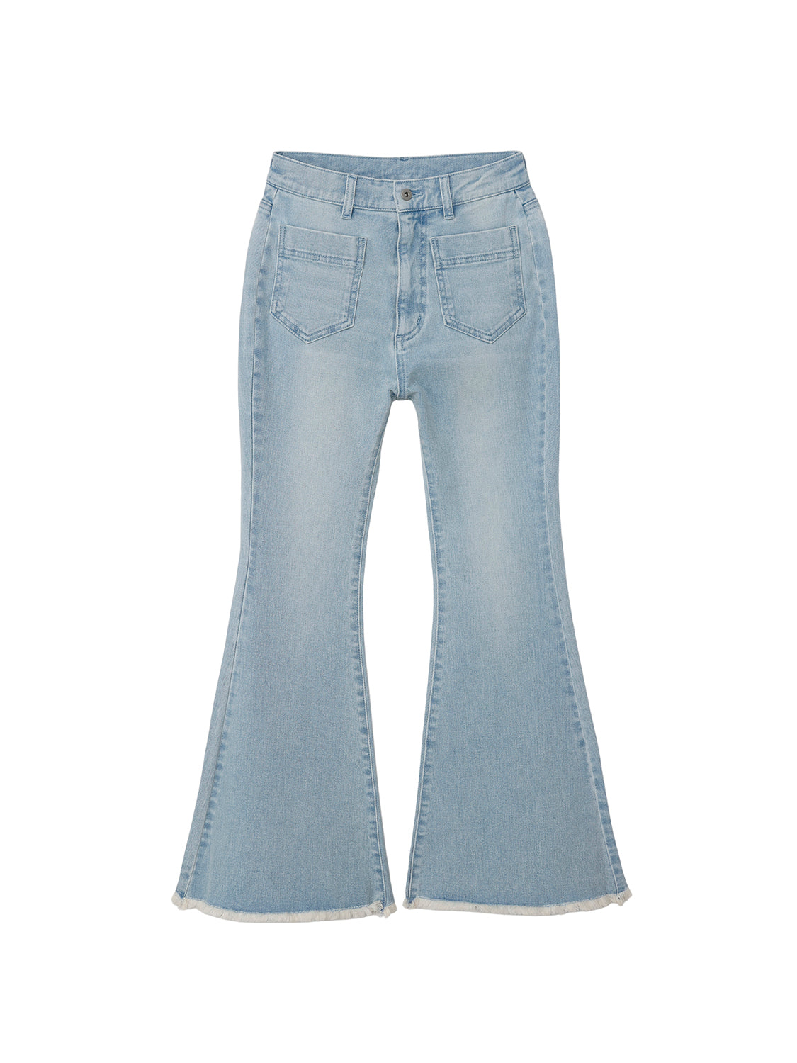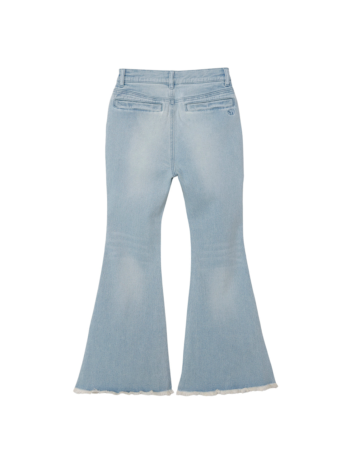 ヴィンテージデニムのムードを漂わせる、緩やかなフレアシルエットのデニムパンツ。