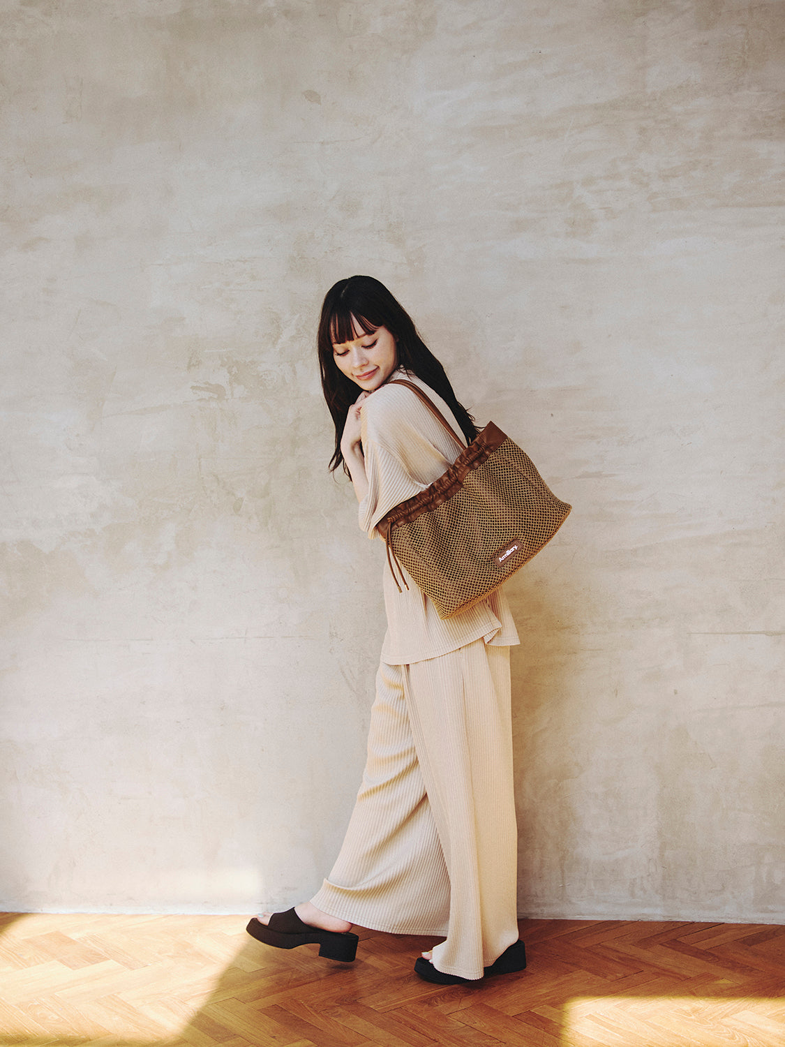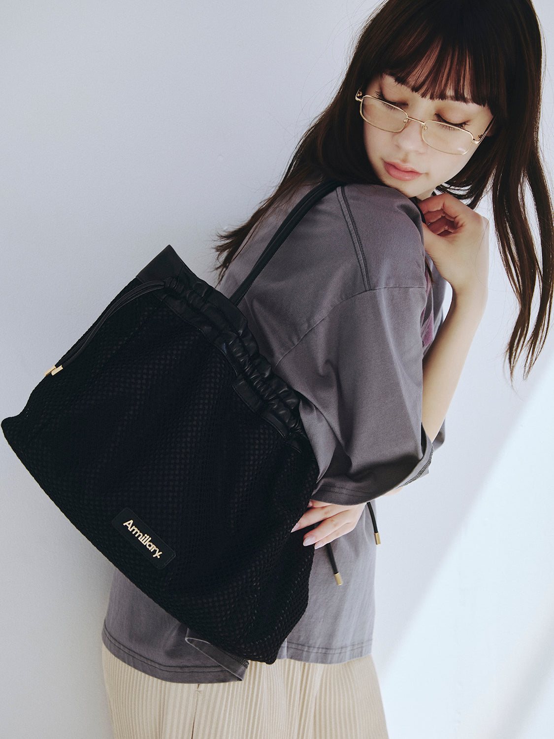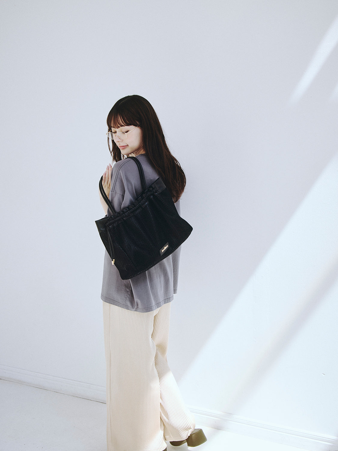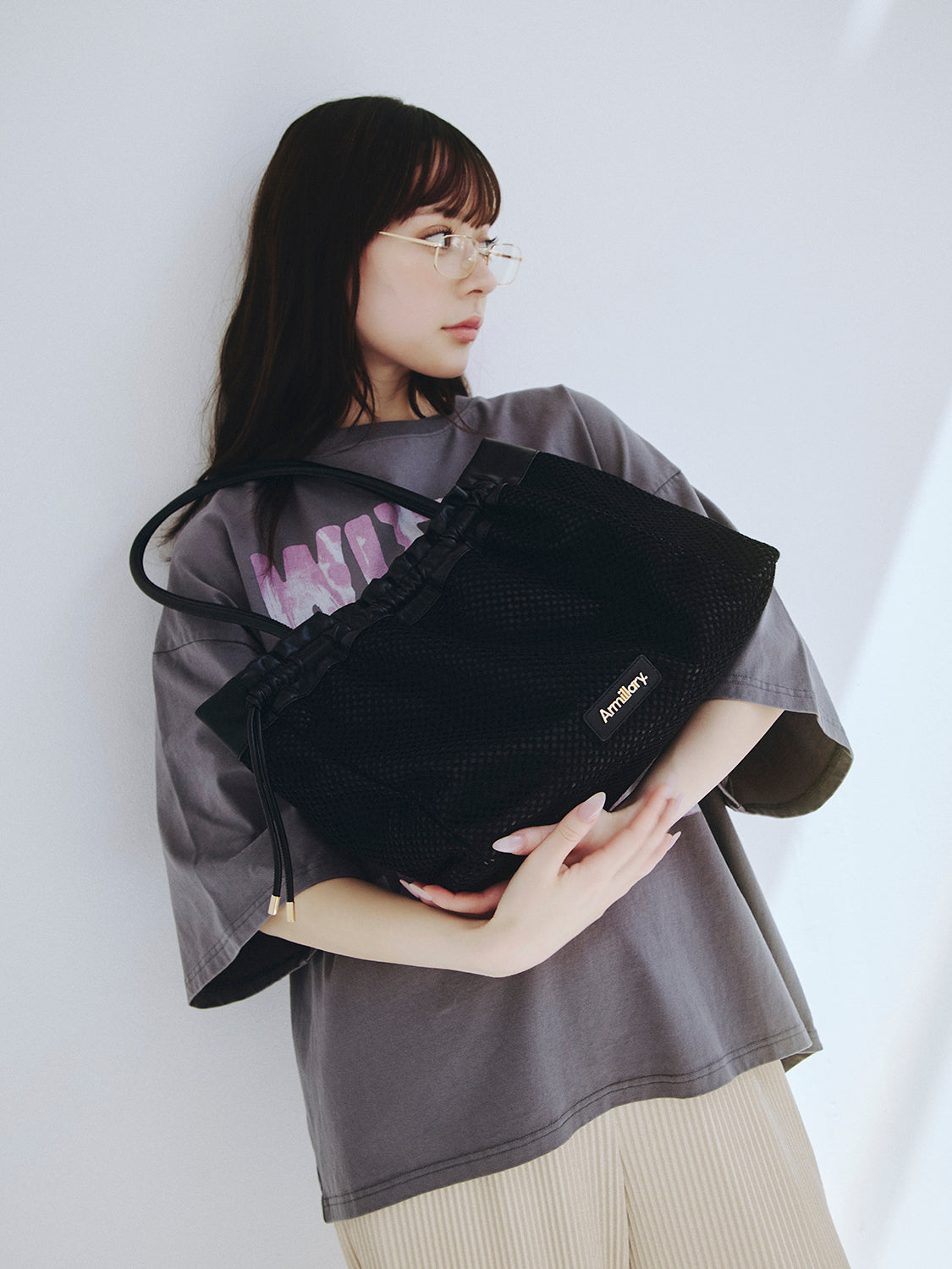 【スタイリング】 カジュアルなTシャツスタイルのアクセントにはもちろん、シンプルなワンピースやセットアップに合わせてメッシュの抜け感を効かせる着こなしもおすすめです。
